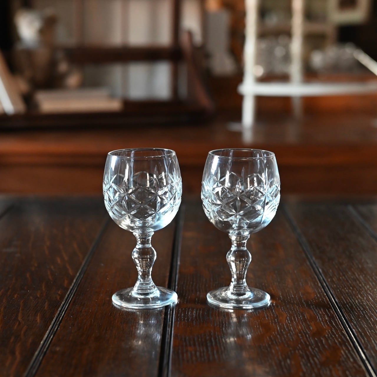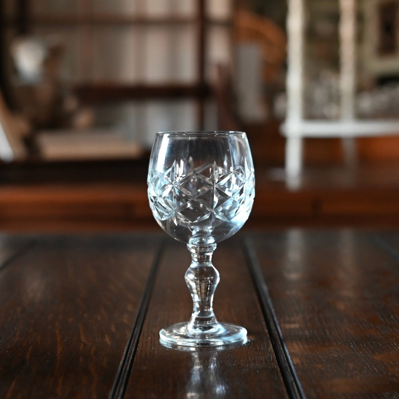 丸みのあるデザインでステム部分にも飾りがある可愛らしいグラスです。