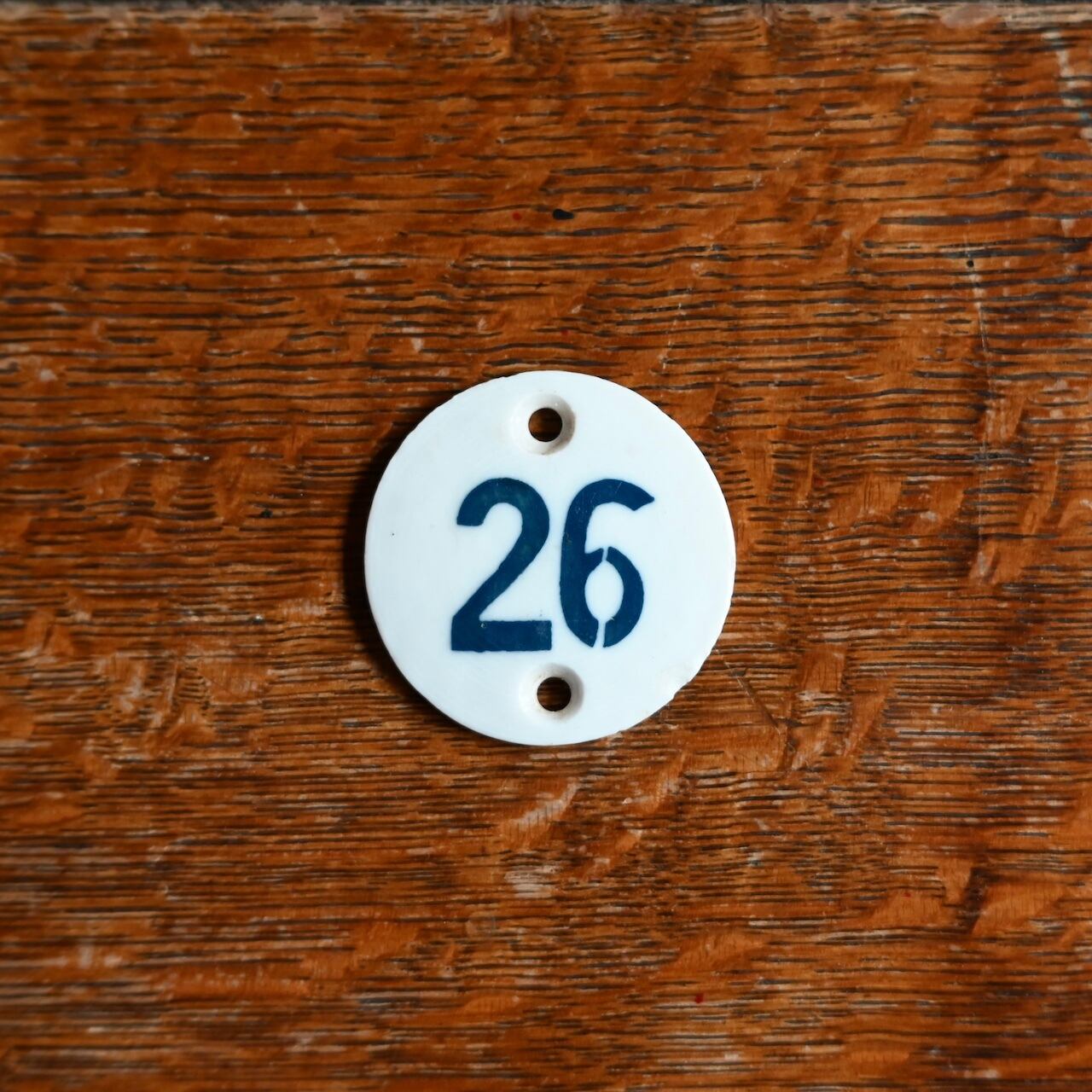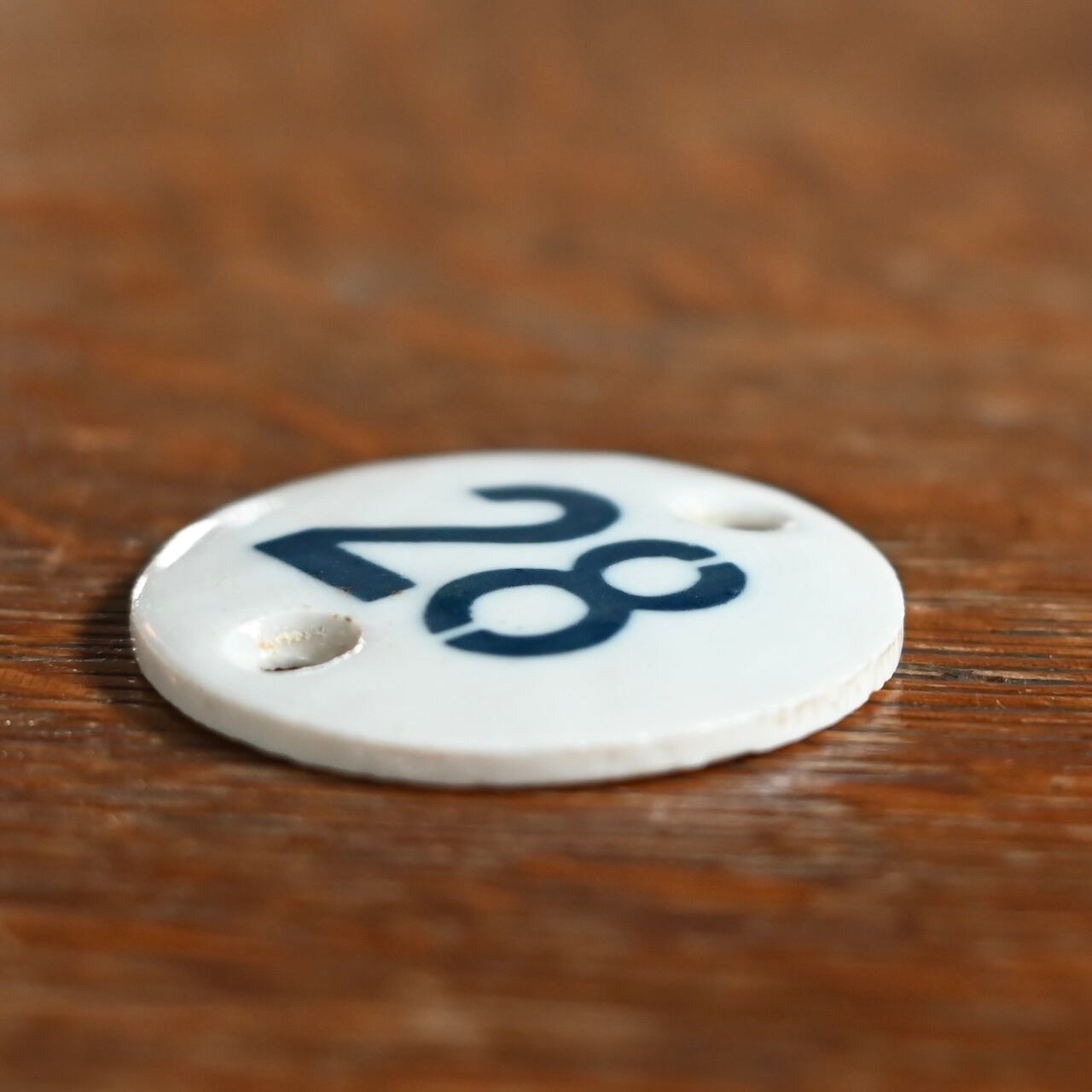 陶器の艶のある白地にブルーのナンバーが可愛いプレートです。