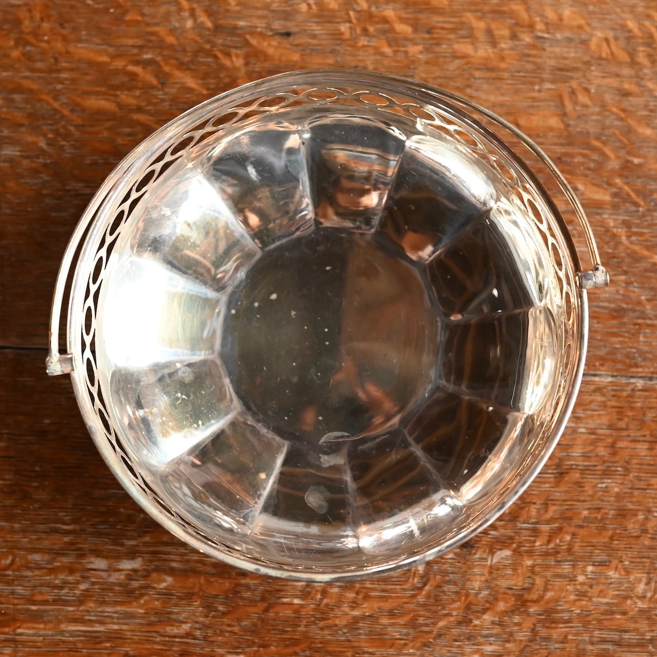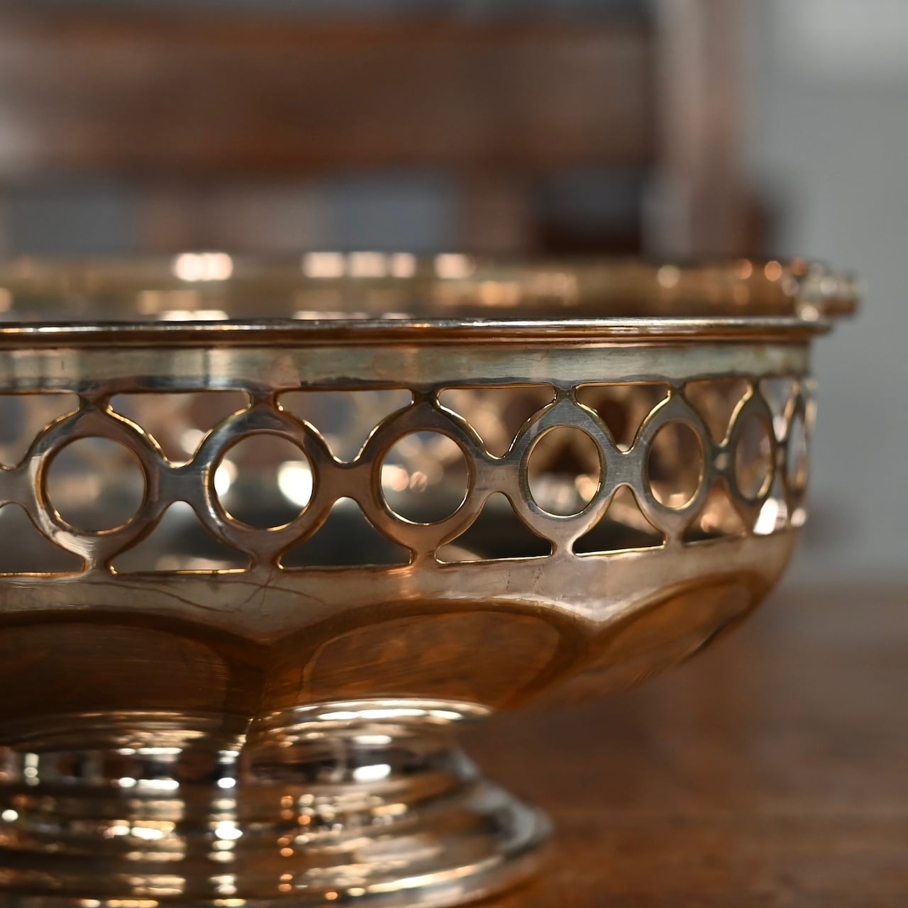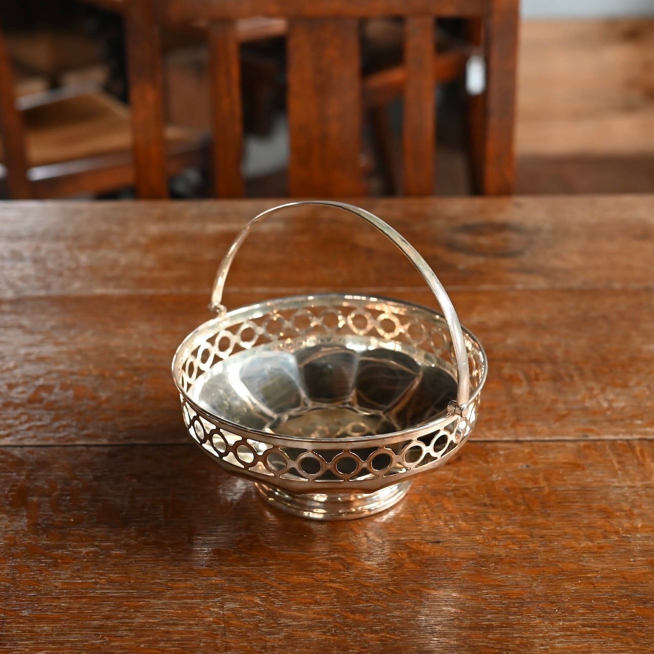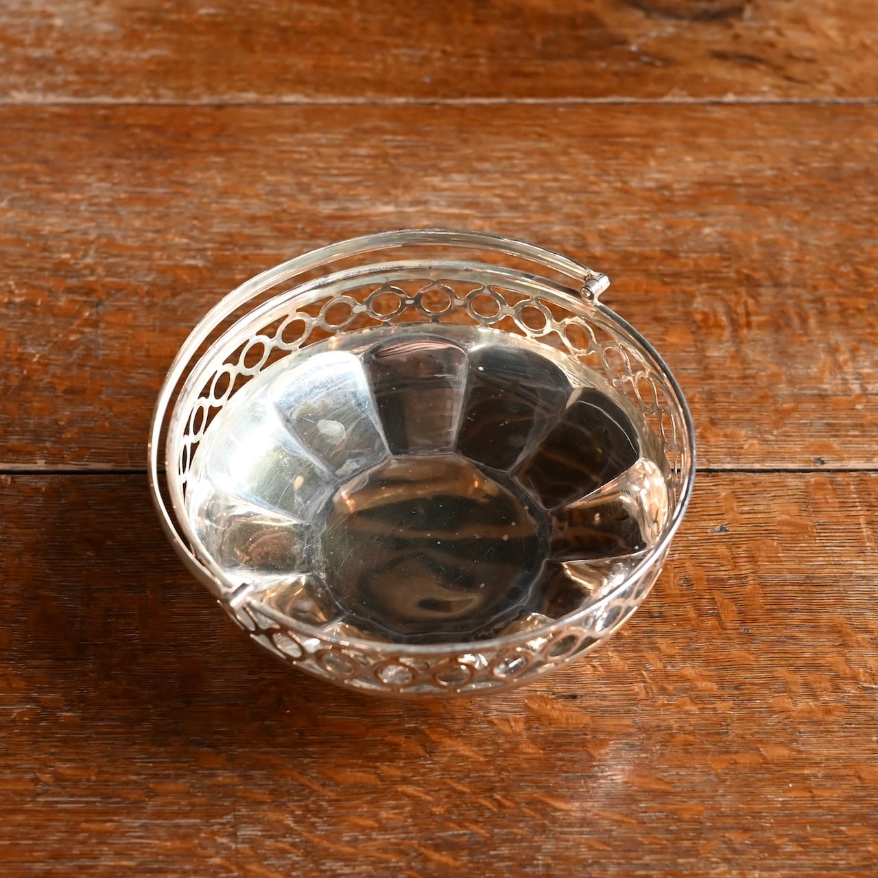 脚付きで深さのあるプレートに透かし彫りが施されていて、プレート部分はお花のようなデザインの可愛らしいバスケットです。