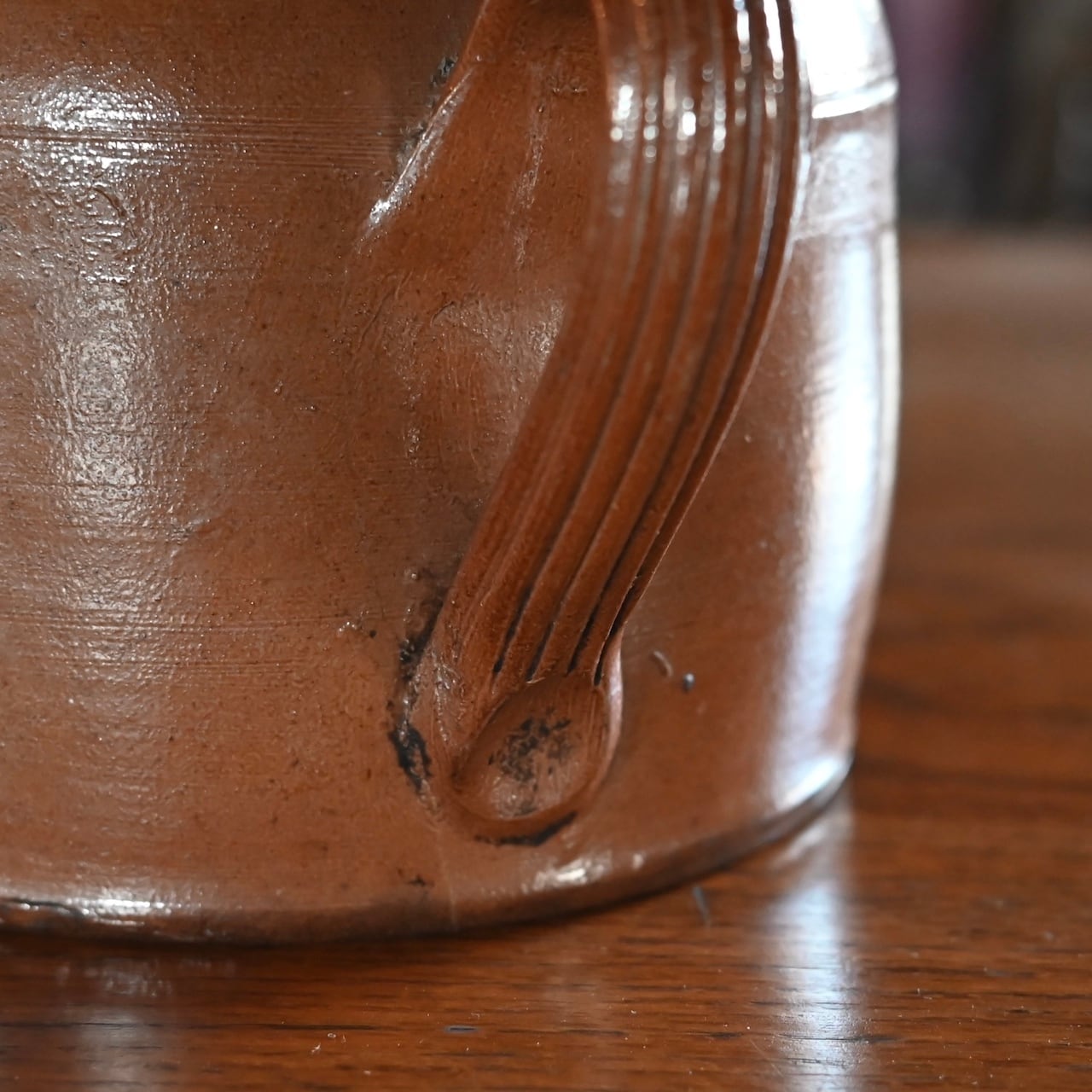 元々はコルクの蓋をして保存食を入れておく為に使われていて、ぽってりしたデザインと持ち手が可愛らしいコンフィポットです。