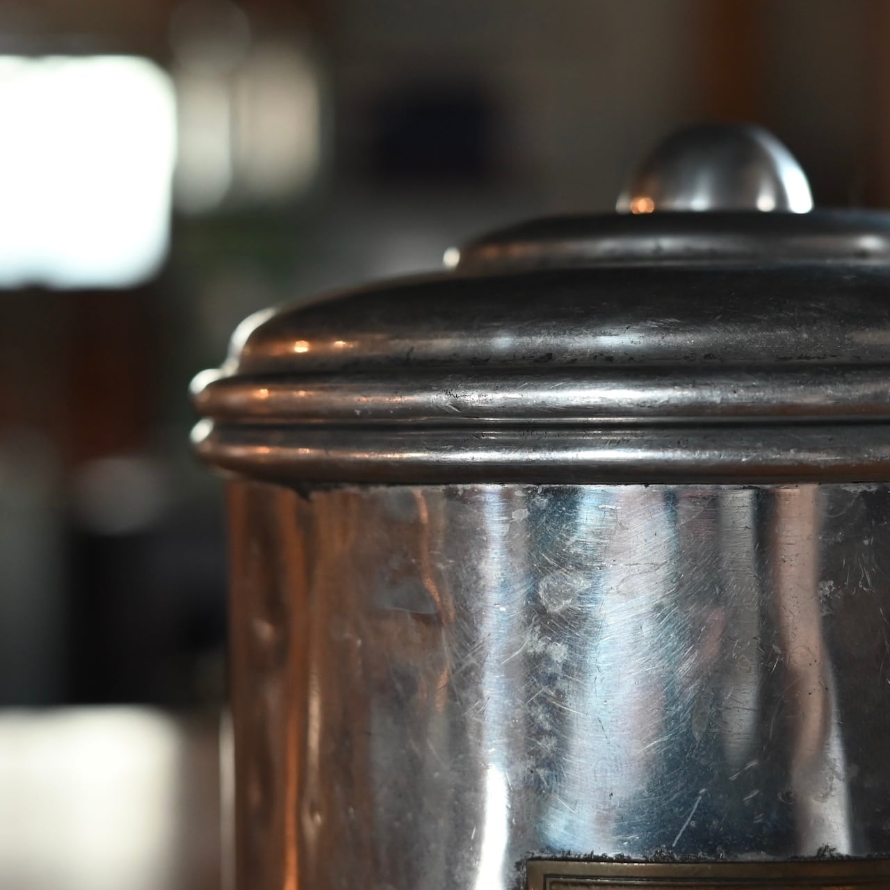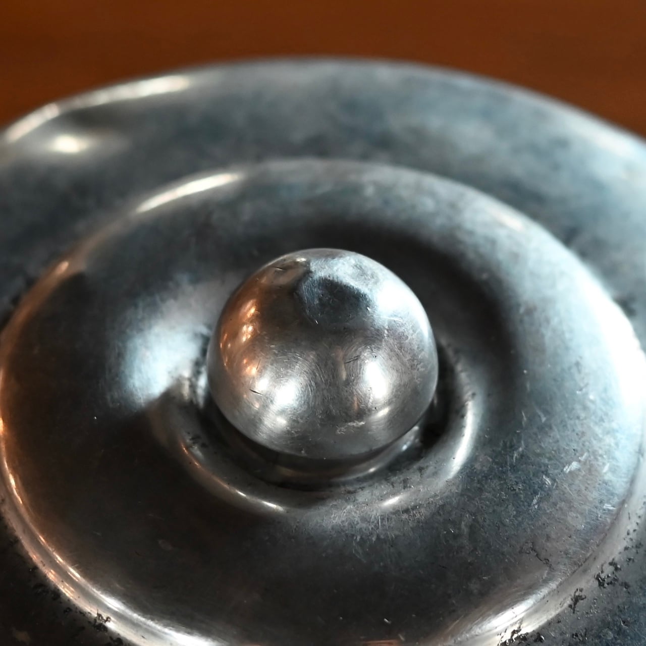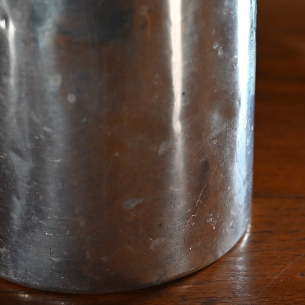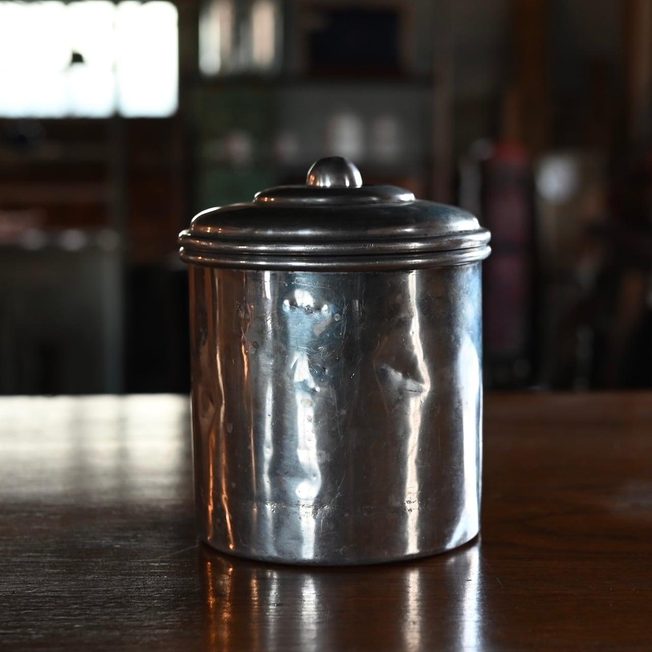 全体的に凹みや傷、くすみが多く、アンティークならではの雰囲気があるので、そのままオブジェとして飾ったり、小物を入れる収納として使うのもおすすめです。