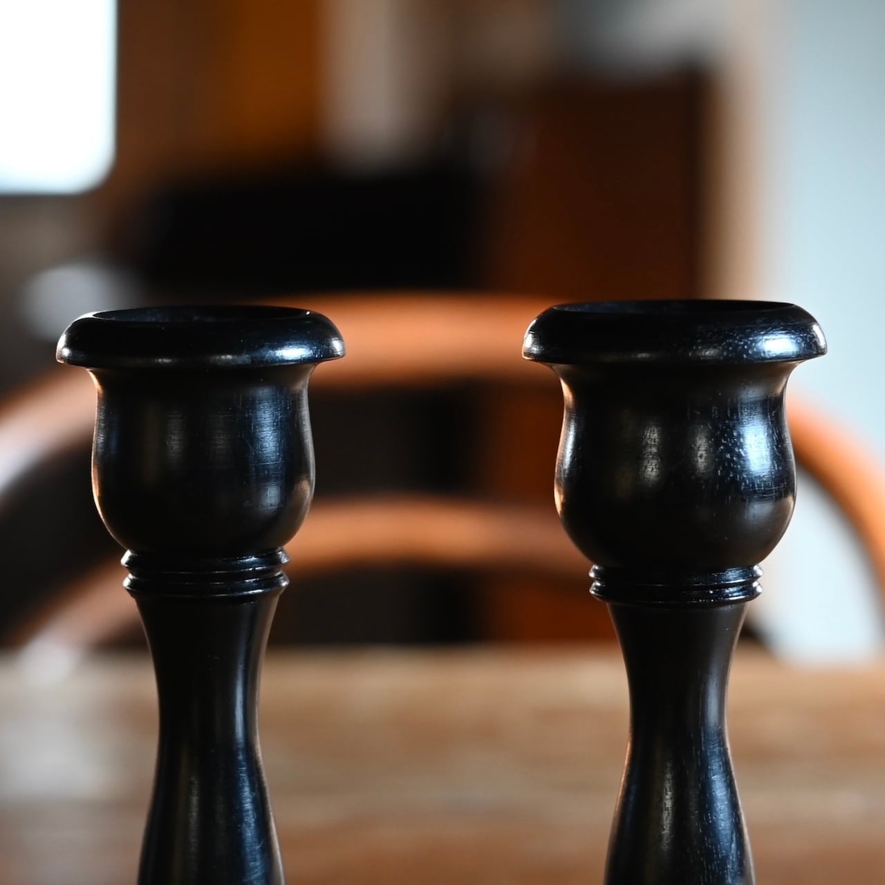 小ぶりでシンプルなデザインのキャンドルスタンドで、裏面に「EBONY(黒檀)」の刻印が入っています。
