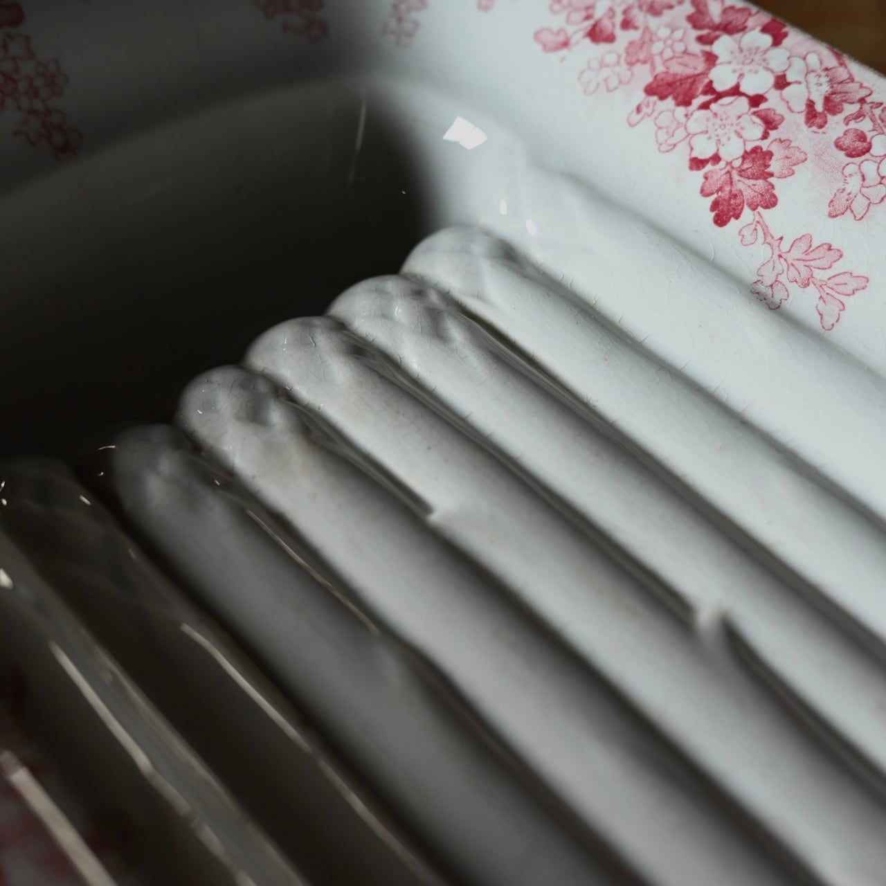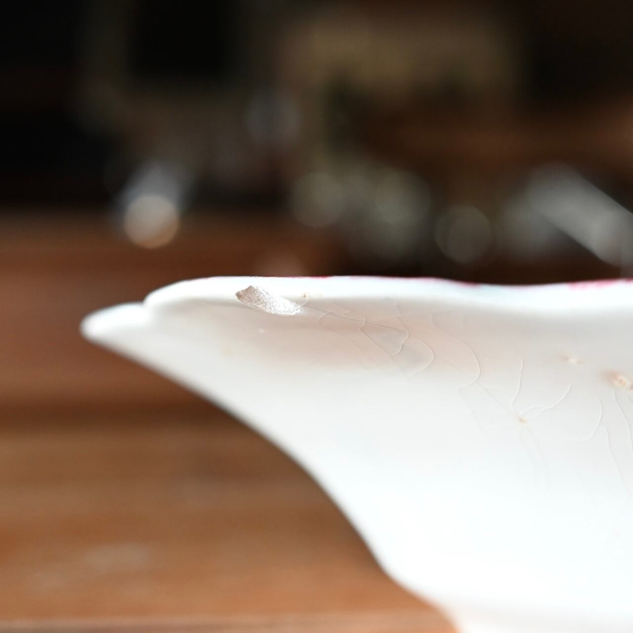 当店で取り扱いをしているフランスの食器は80年以上経過しているものが殆どです。古いものになりますので、貫入(釉薬の細かいひび割れ)やカトラリーによる傷、シミや汚れ、小さな欠けなどがあるものもございます。なるべく細かく写真を撮っておりますが、撮りきれない部分や水を含んで現れる貫入などもありますので、神経質な方や新品のようなクオリティーを求めるお客様には不向きな商品になっております。