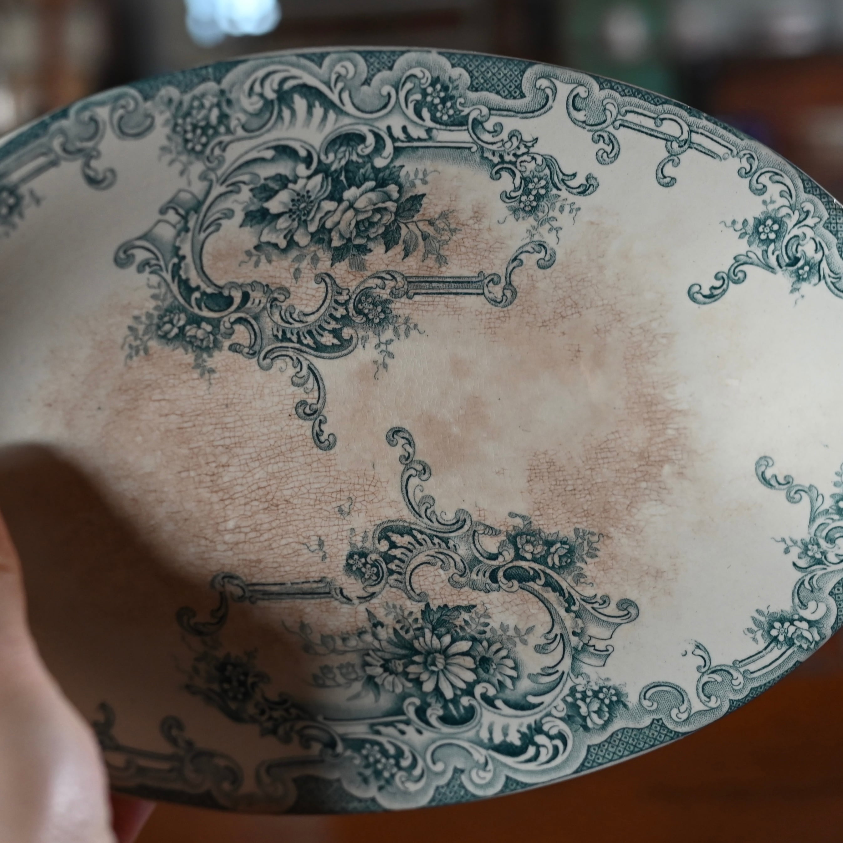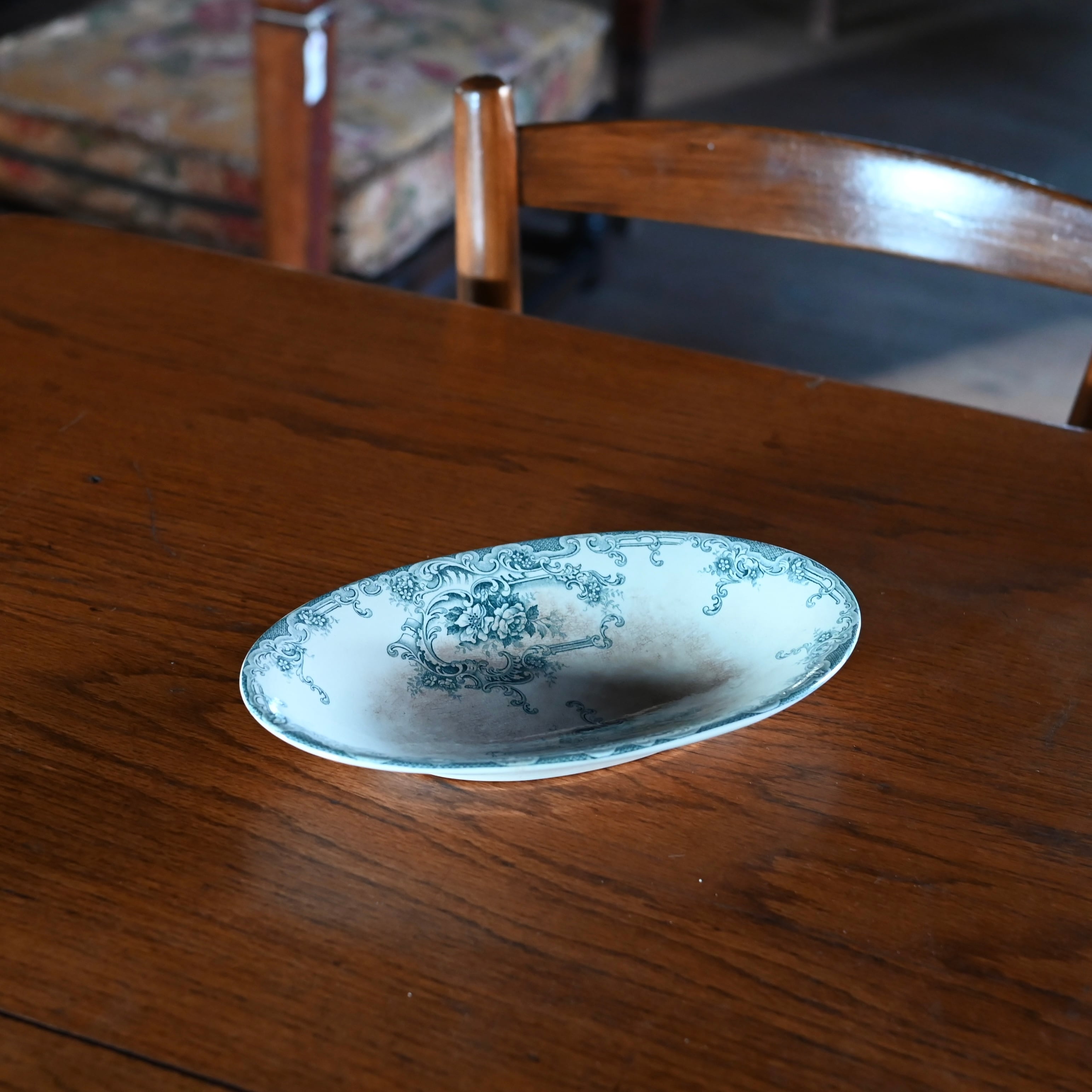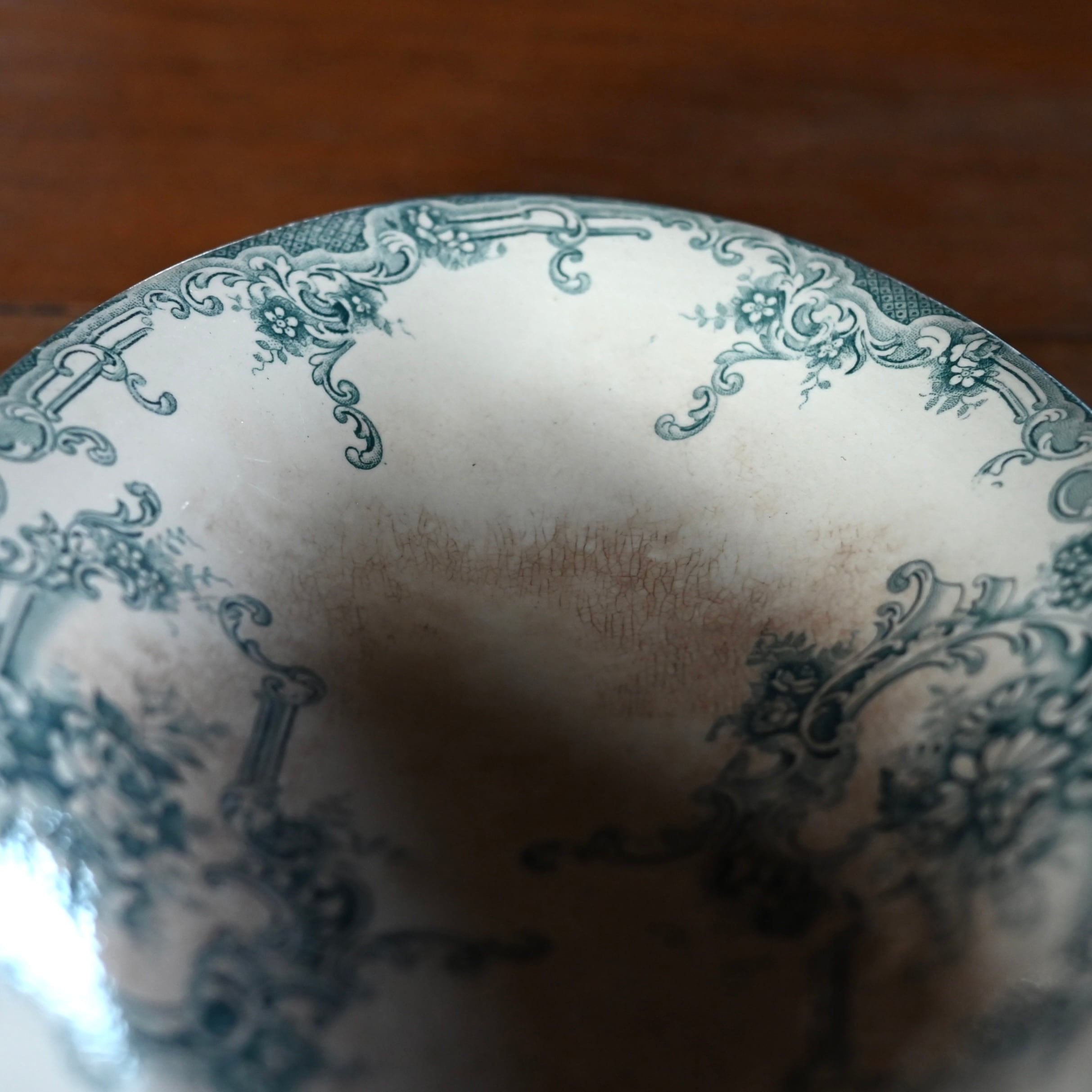 当店で取り扱いをしている食器は80年以上経過しているものが殆どです。古いものになりますので、貫入(釉薬の細かいひび割れ)やカトラリーによる傷、シミや汚れ、小さな欠けなどがあるものもございます。なるべく細かく写真を撮っておりますが、撮りきれない部分や水を含んで現れる貫入などもありますので、神経質な方や新品のようなクオリティーを求めるお客様には不向きな商品になっております。