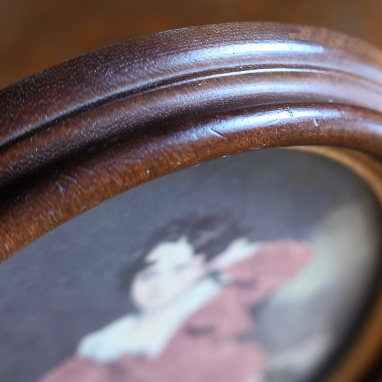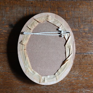 楕円形のフレームと落ち着いたブラウンとゴールドがカッコよく、ガラスが嵌められていて高級感があります。