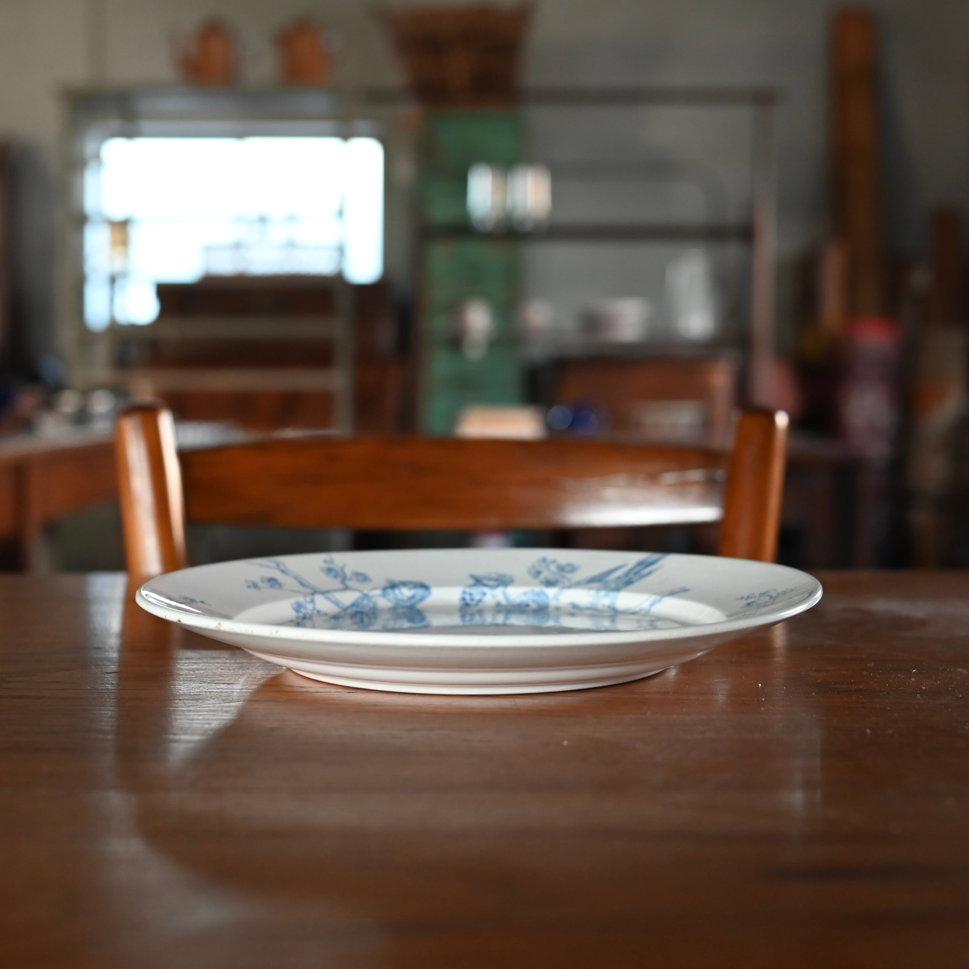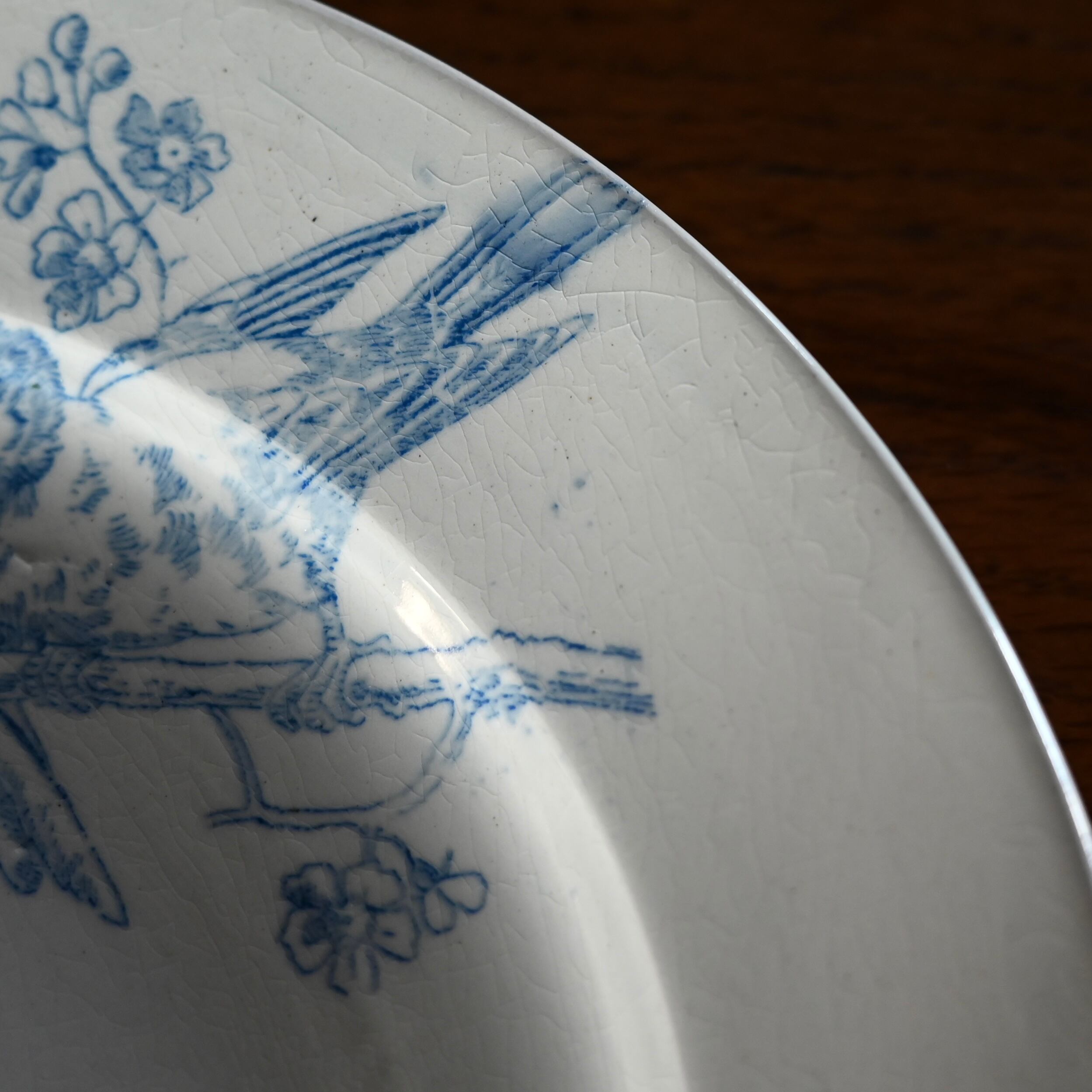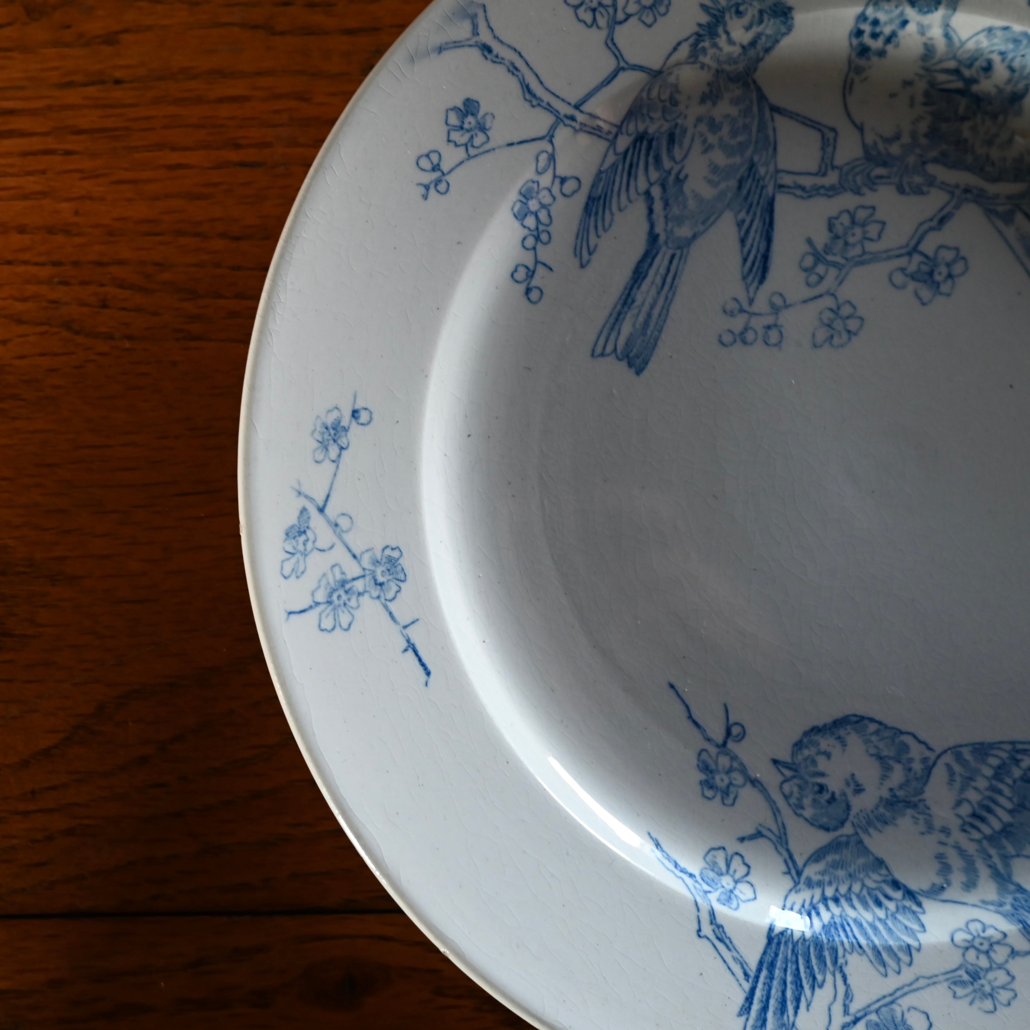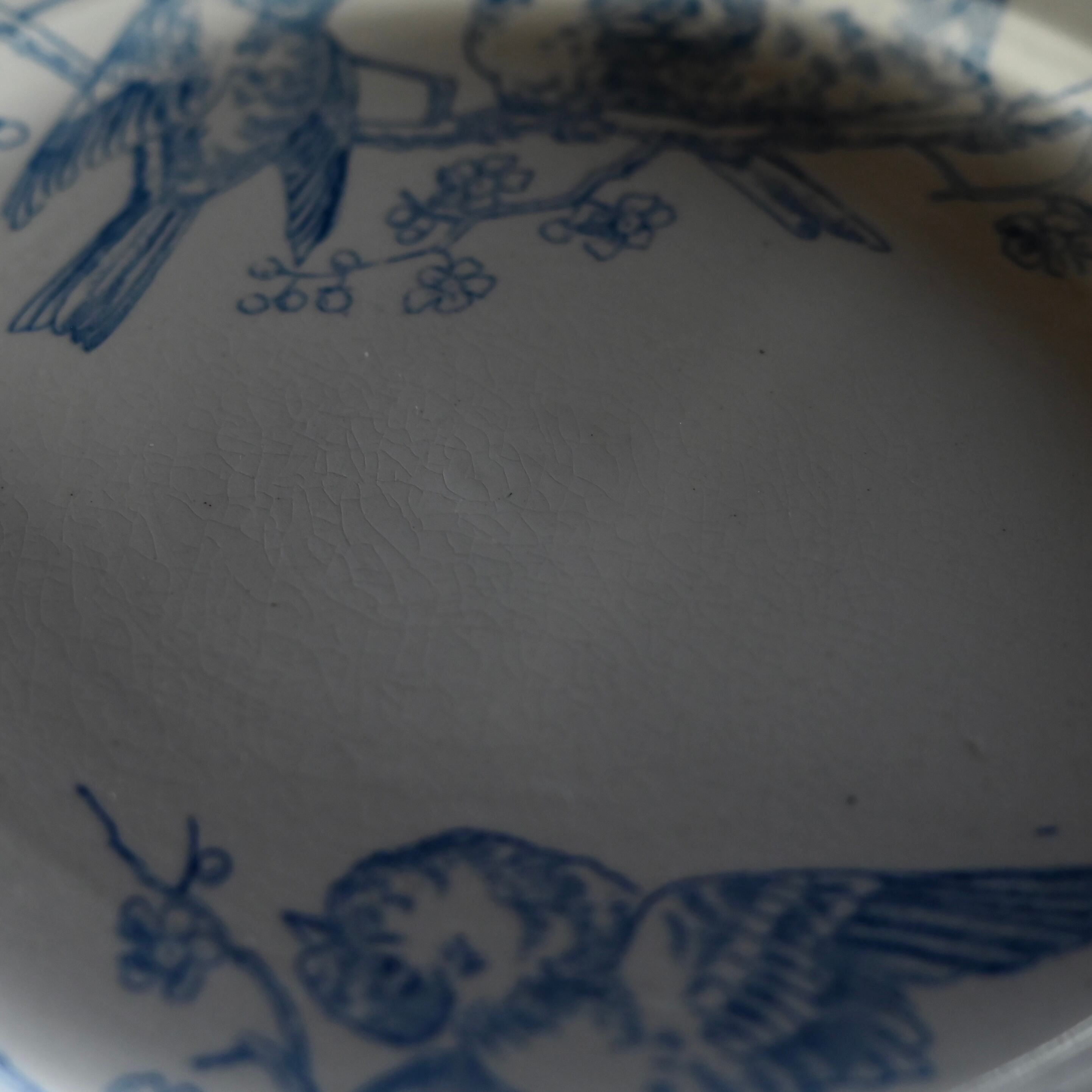 直径が約238mmのプレートで、落ち着いたブルーのラインで鳥と花が描かれています。