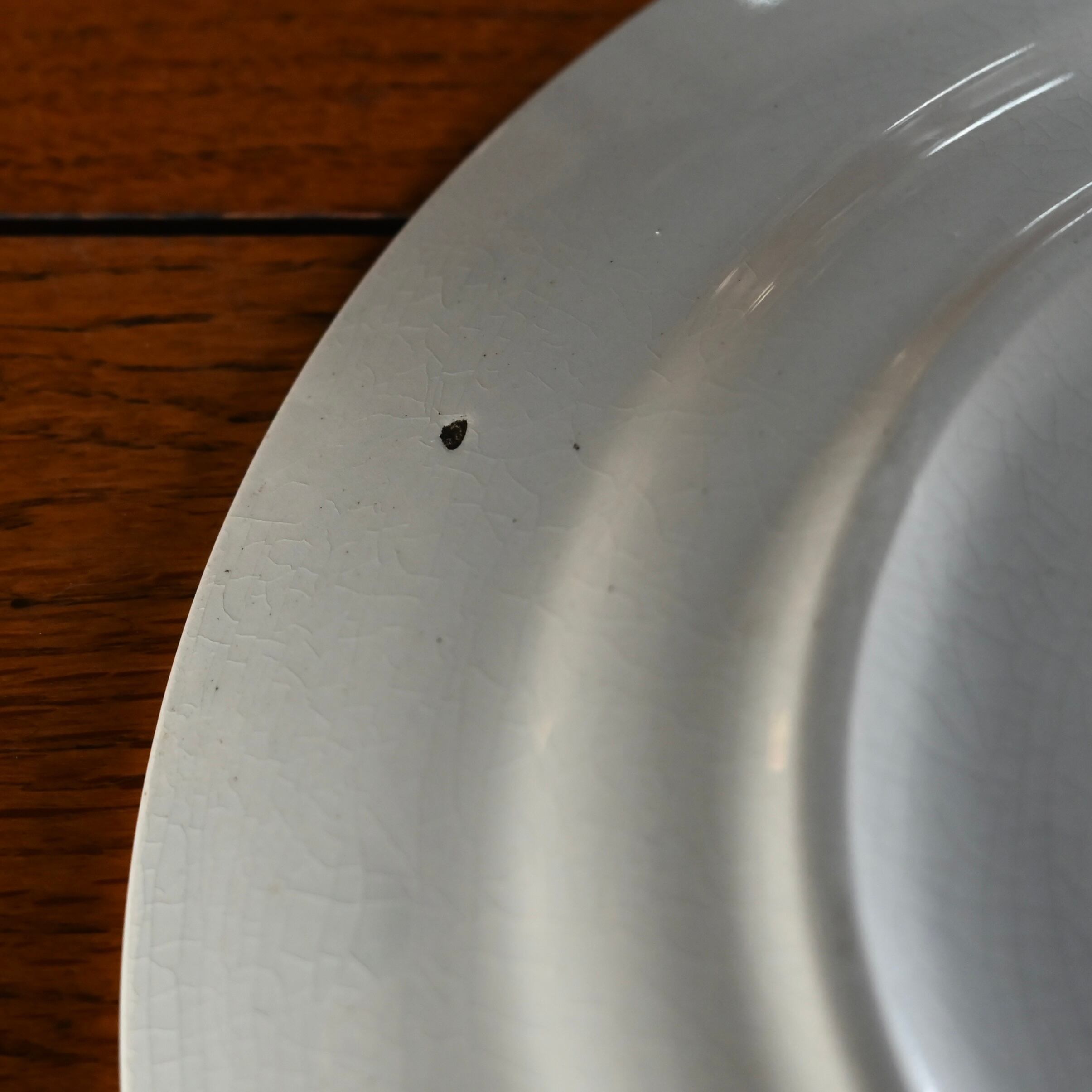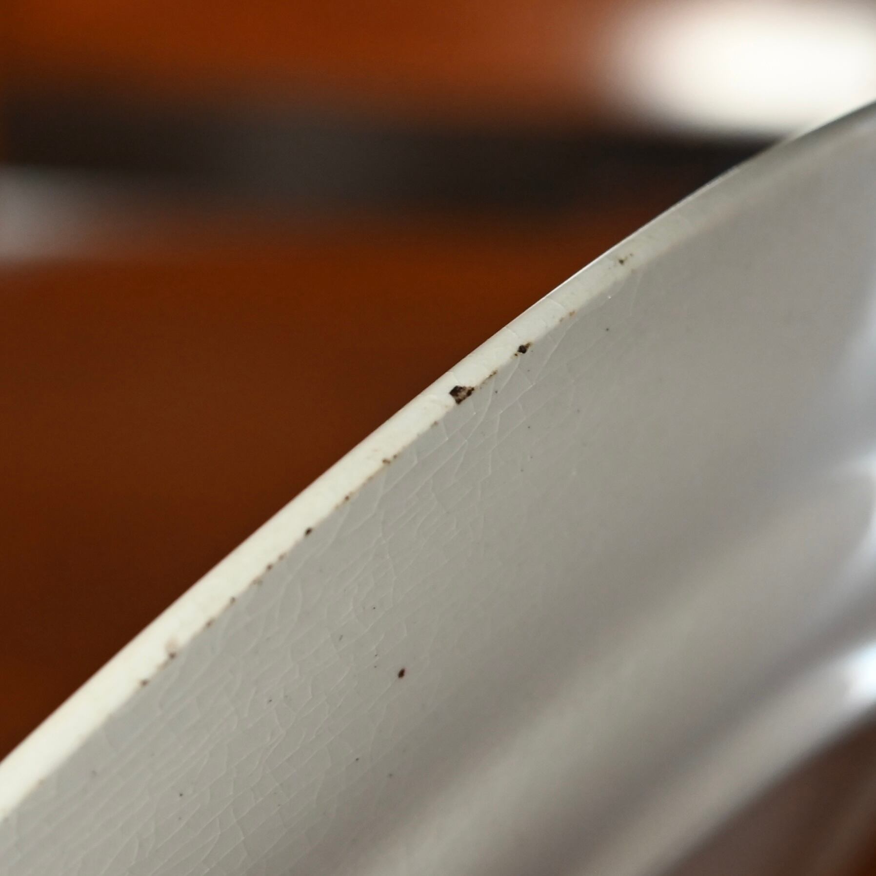 当店で取り扱いをしているフランスの食器は80年以上経過しているものが殆どです。古いものになりますので、貫入(釉薬の細かいひび割れ)やカトラリーによる傷、シミや汚れ、小さな欠けなどがあるものもございます。なるべく細かく写真を撮っておりますが、撮りきれない部分や水を含んで現れる貫入などもありますので、神経質な方や新品のようなクオリティーを求めるお客様には不向きな商品になっております。