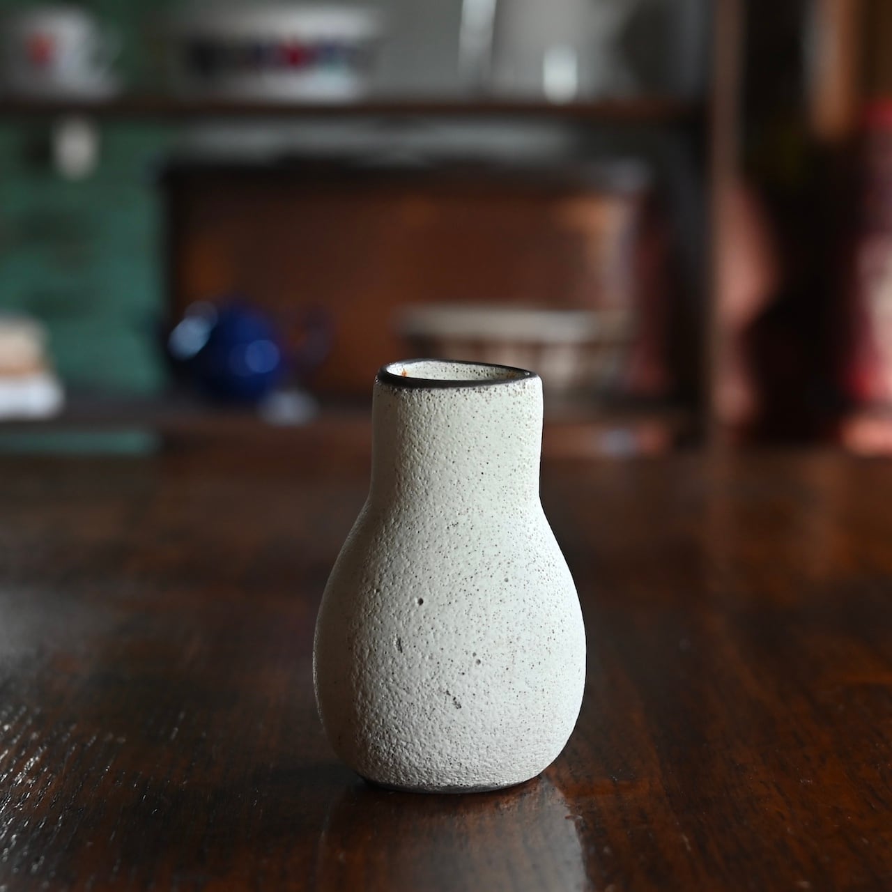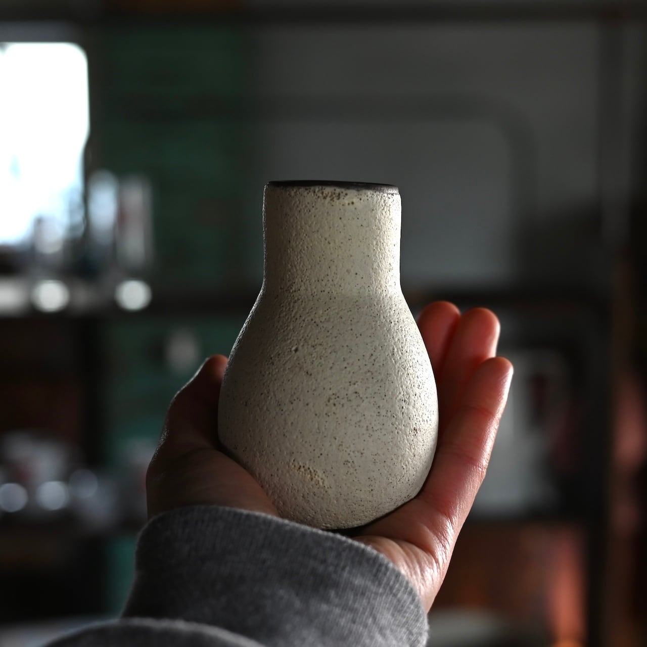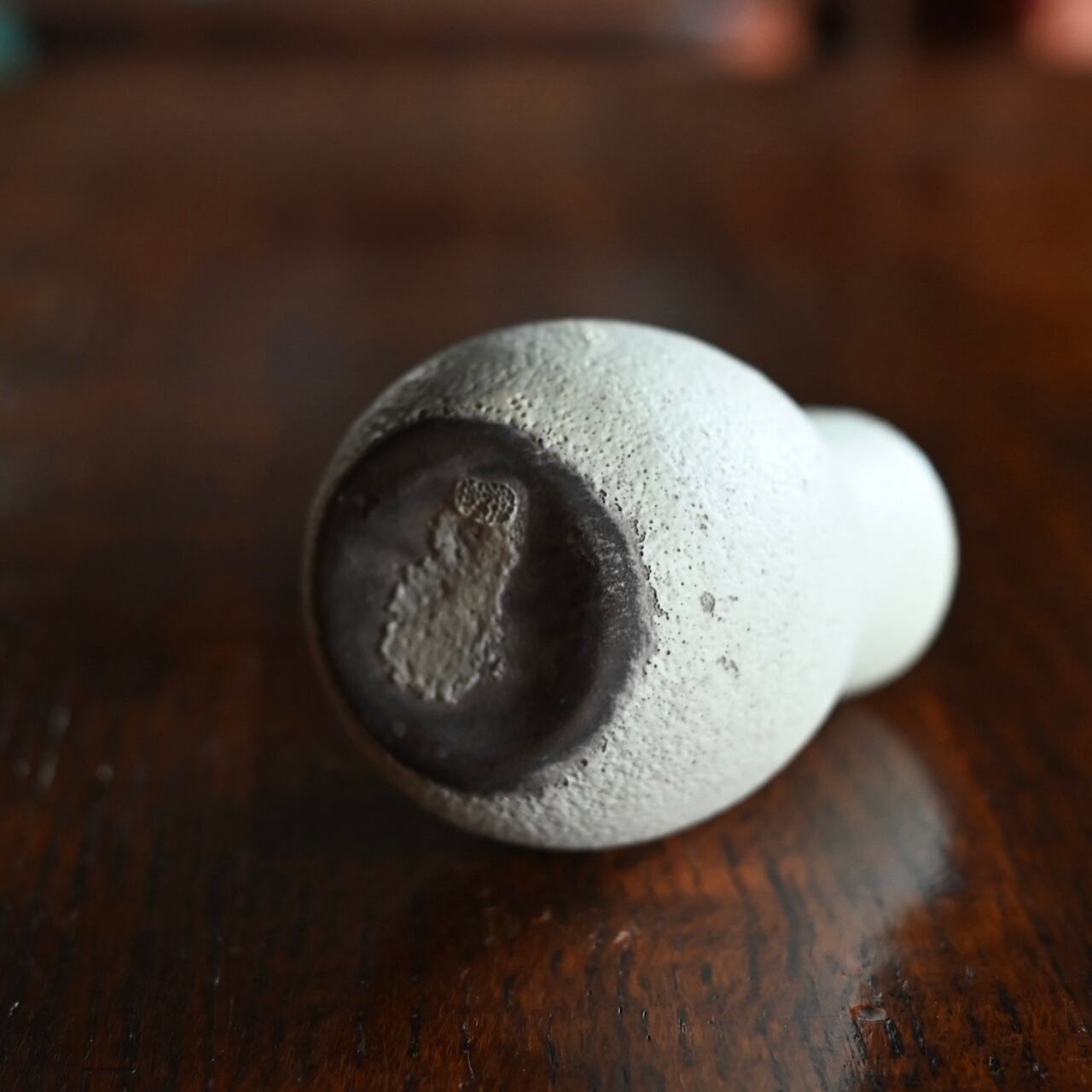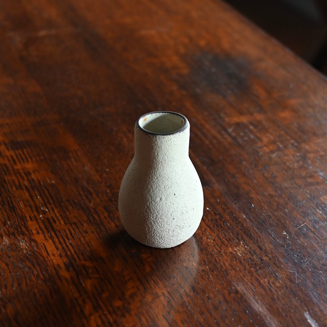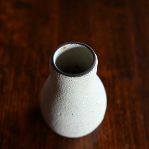 マットでザラザラした質感で、歪な形と小ぶりなサイズが可愛らしいフラワーベースです。
