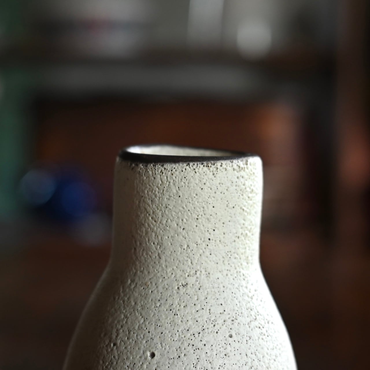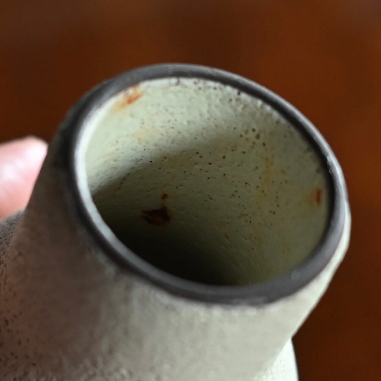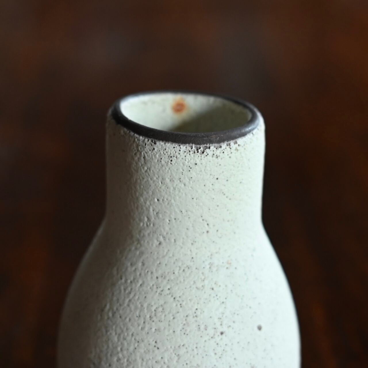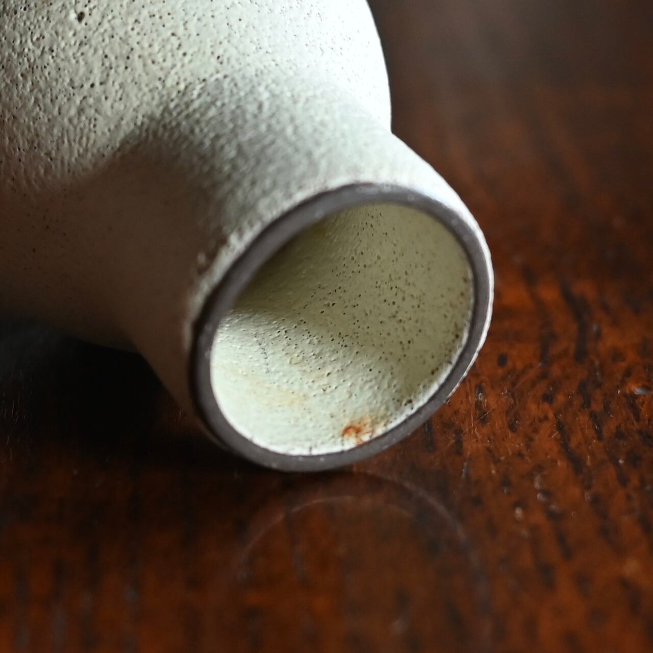 マットでザラザラした質感で、歪な形と小ぶりなサイズが可愛らしいフラワーベースです。