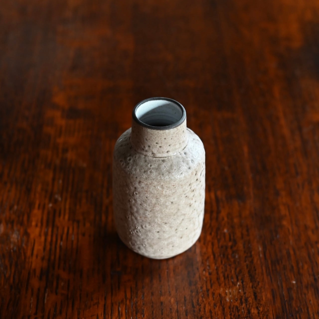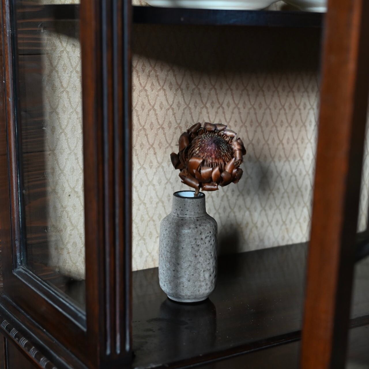 艶のある落ち着いたブラウン色で、くびれがあるのでどんなお花も入れやすいデザインです。