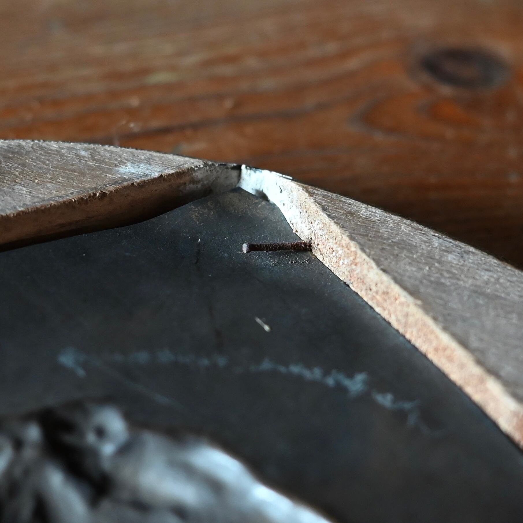 割れや傷が多数あり、アンティークの風合いがかっこいいフレームです。