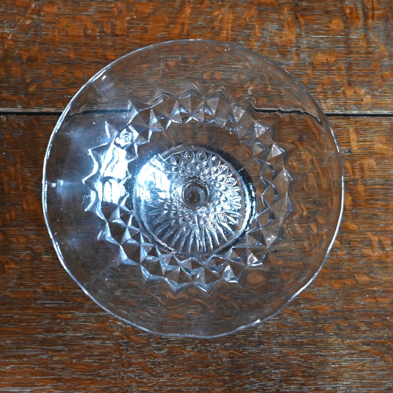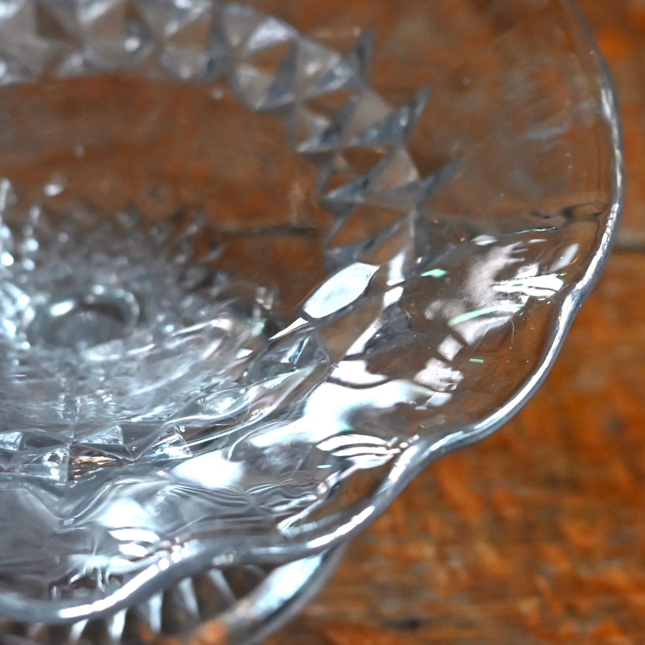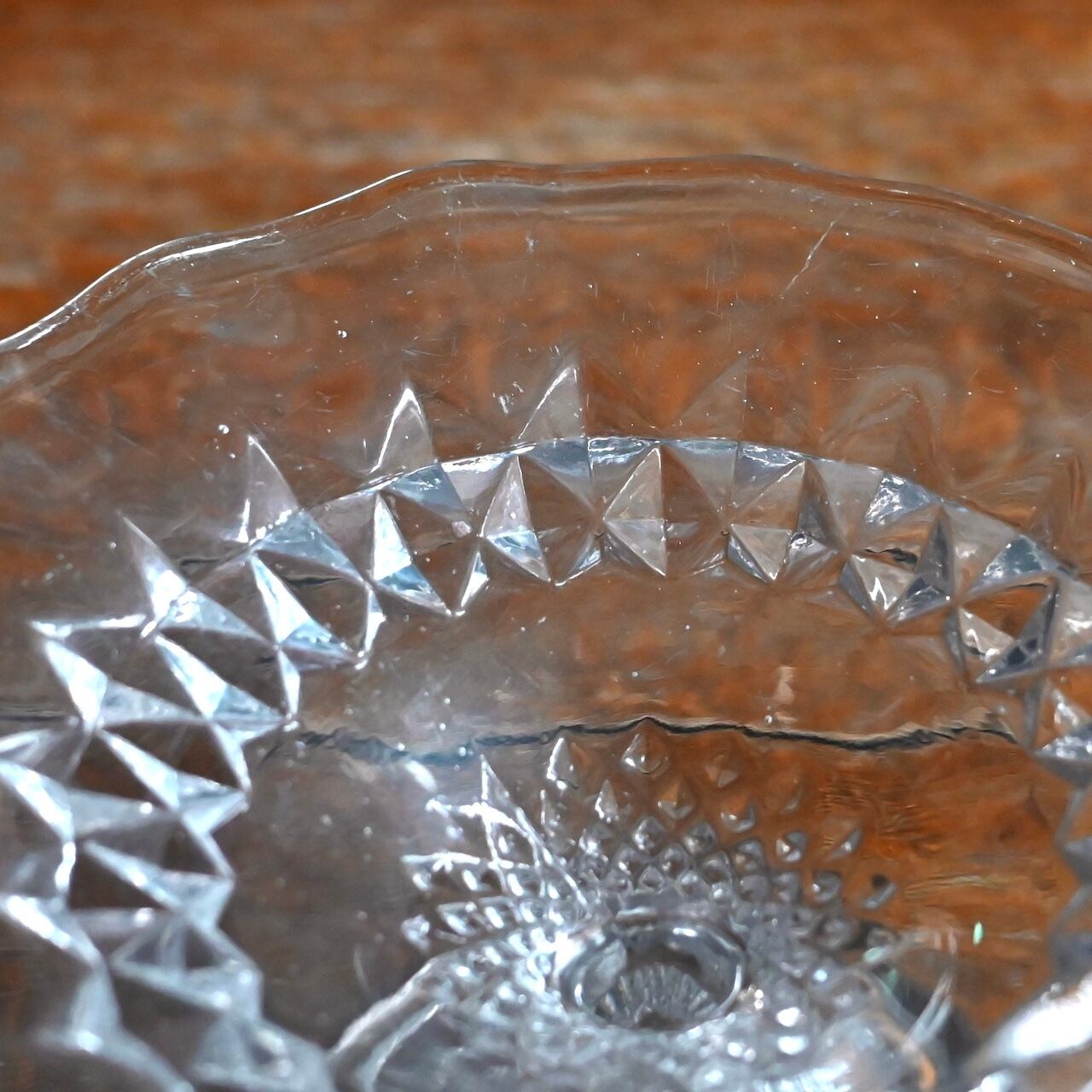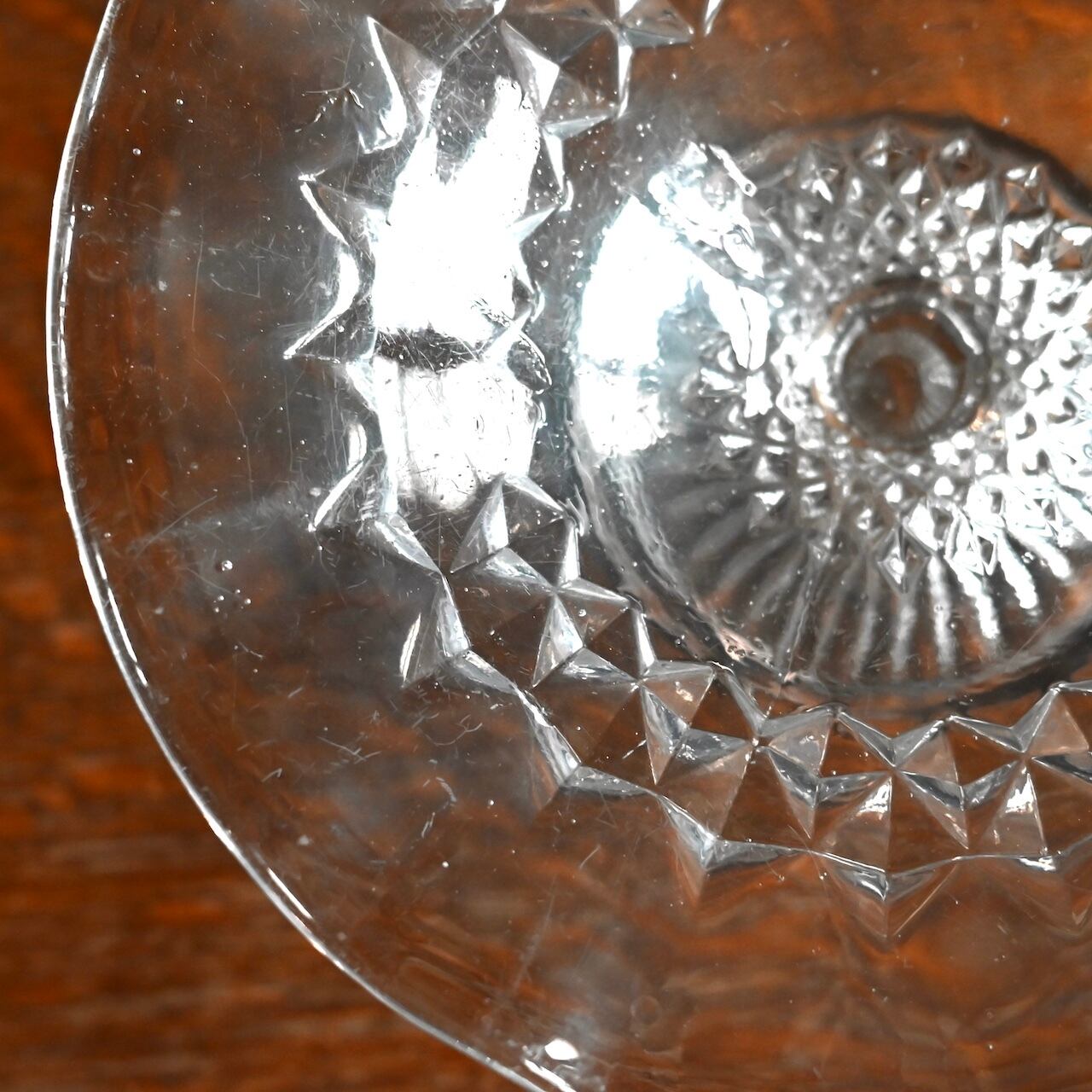 プレスガラスで作られた食器の特徴が、この凹凸で表現された模様。