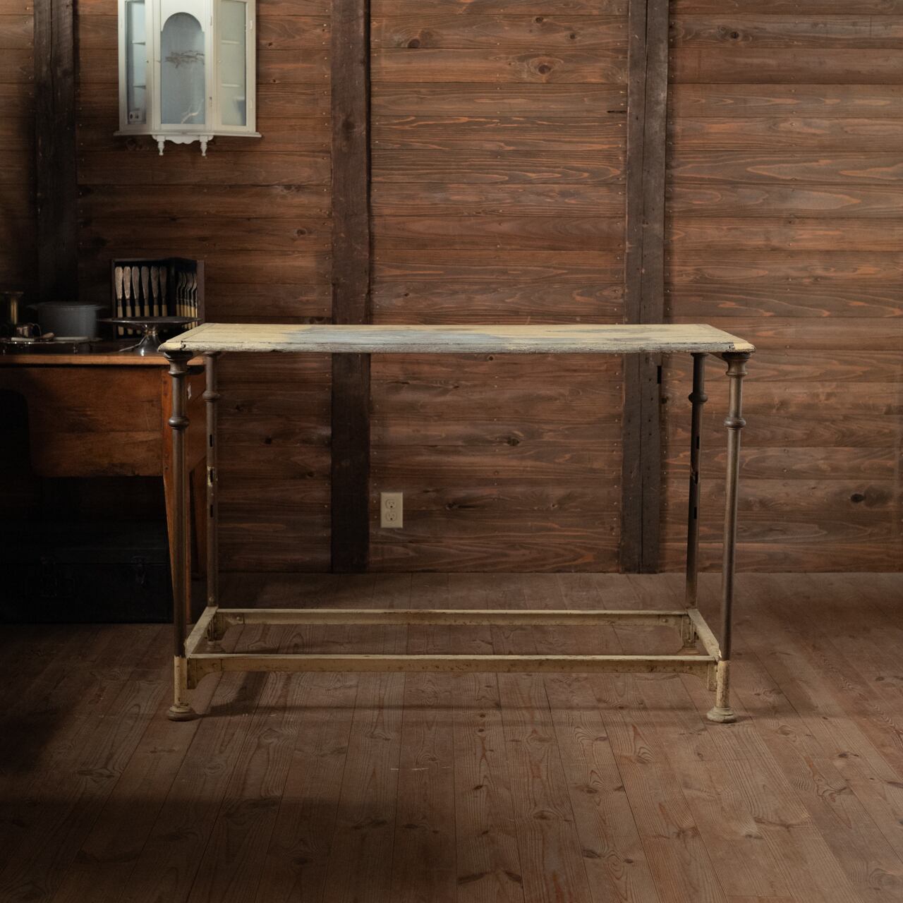 脚にブラケットが取り付けれる穴が空いていて、天板が乗せれる仕様だったと思われます。