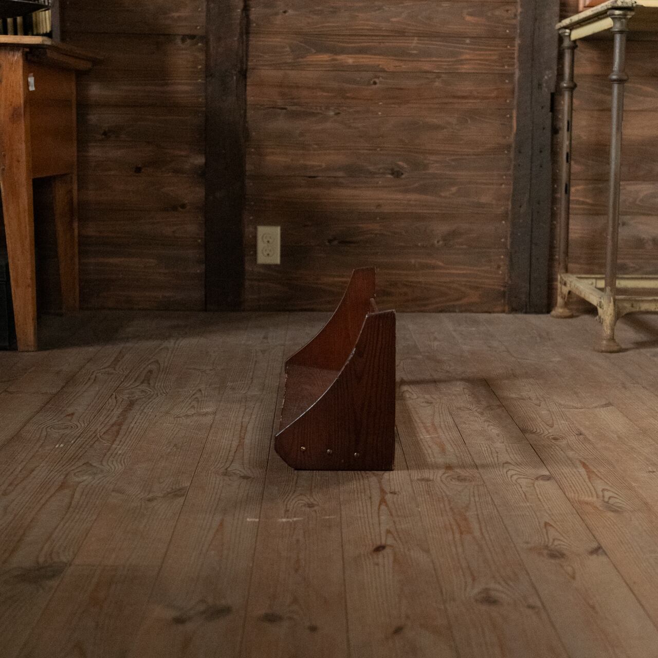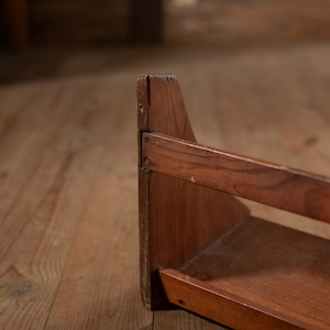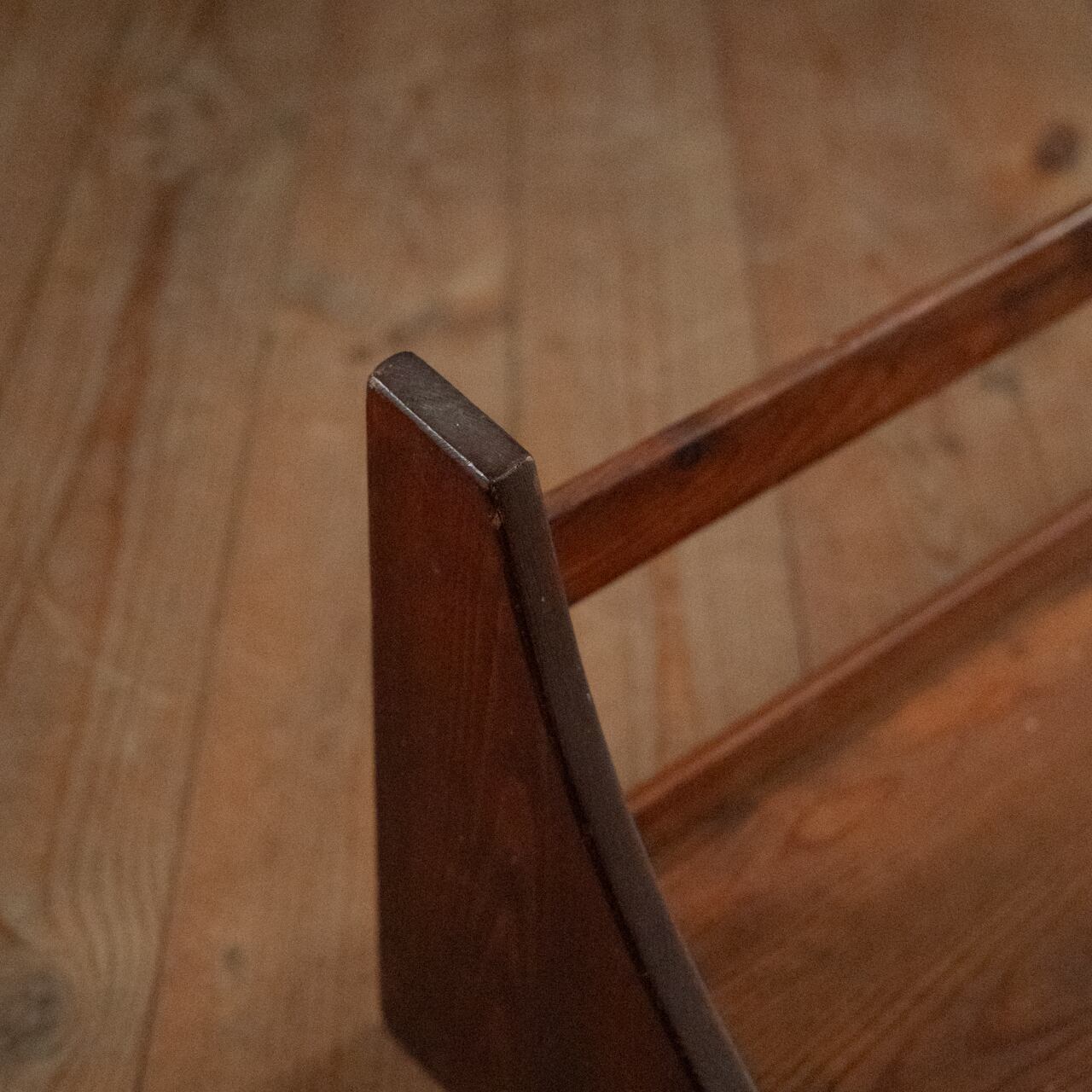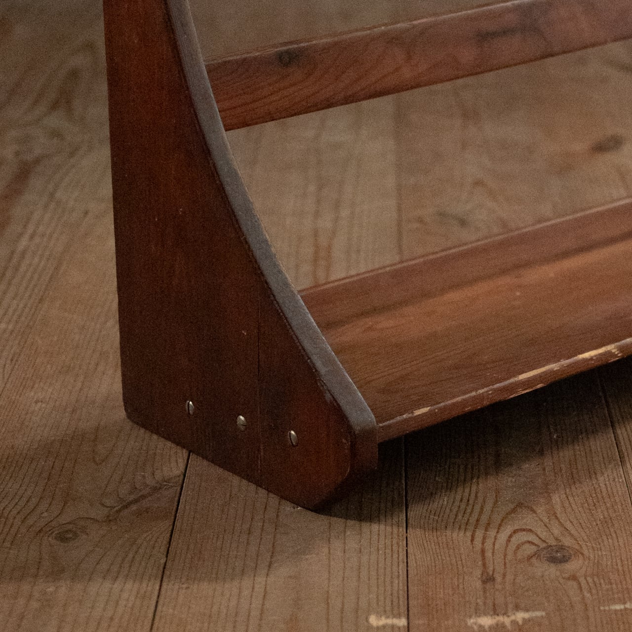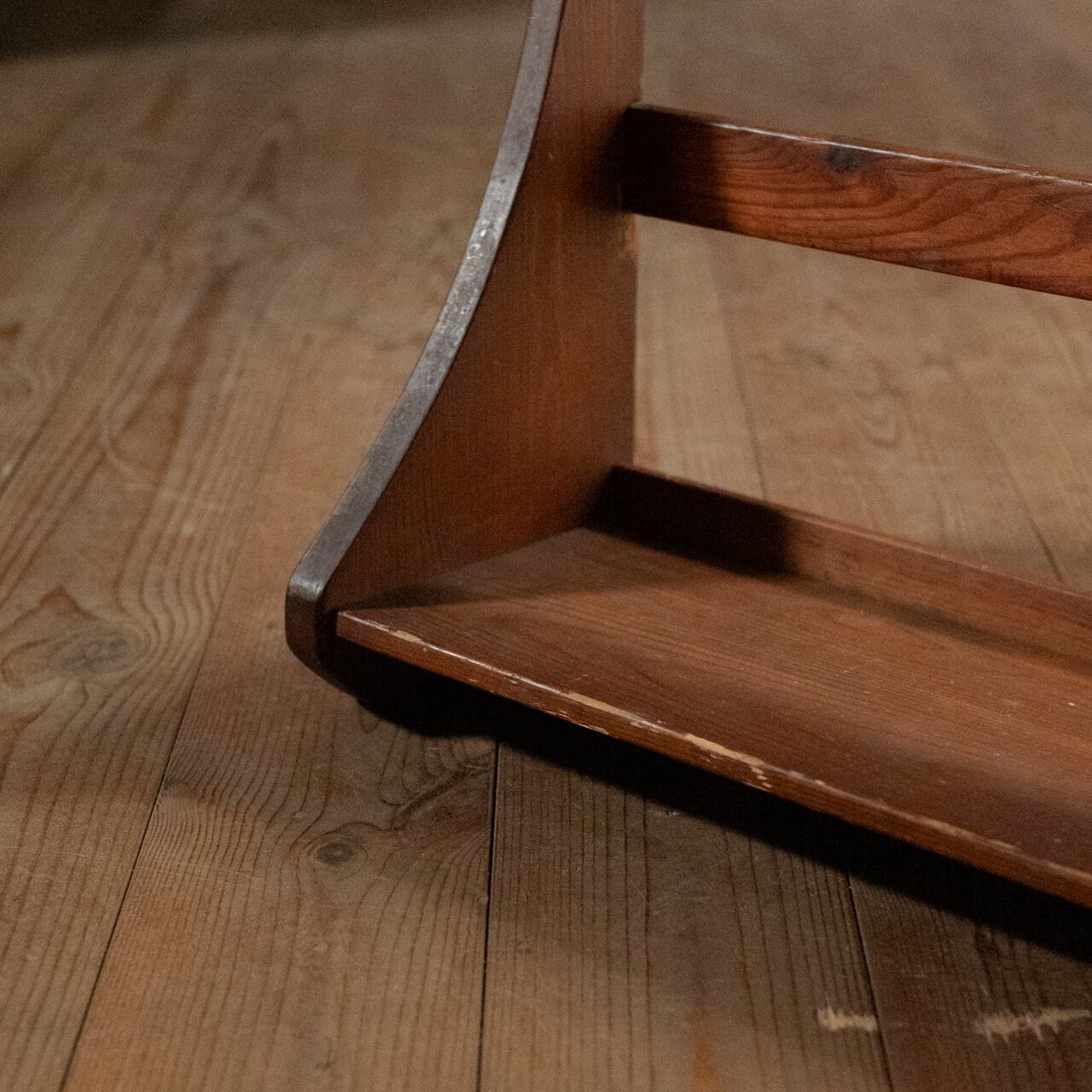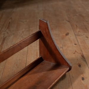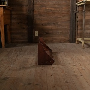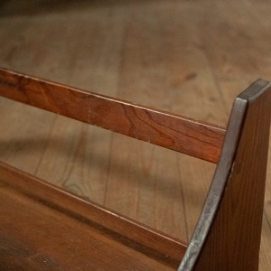いい飴色をしたこの本たては、全体のデザインはシンプルですがアクセントに側板に頭が丸い大きめのネジを使ったり、少し後に傾斜掛かっていて本が置きやすい構造にしたりと、よく考えられて作られています。