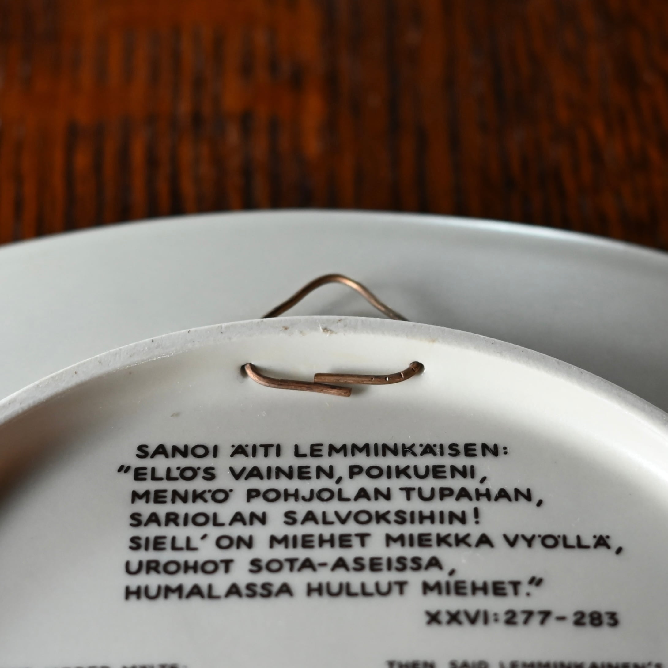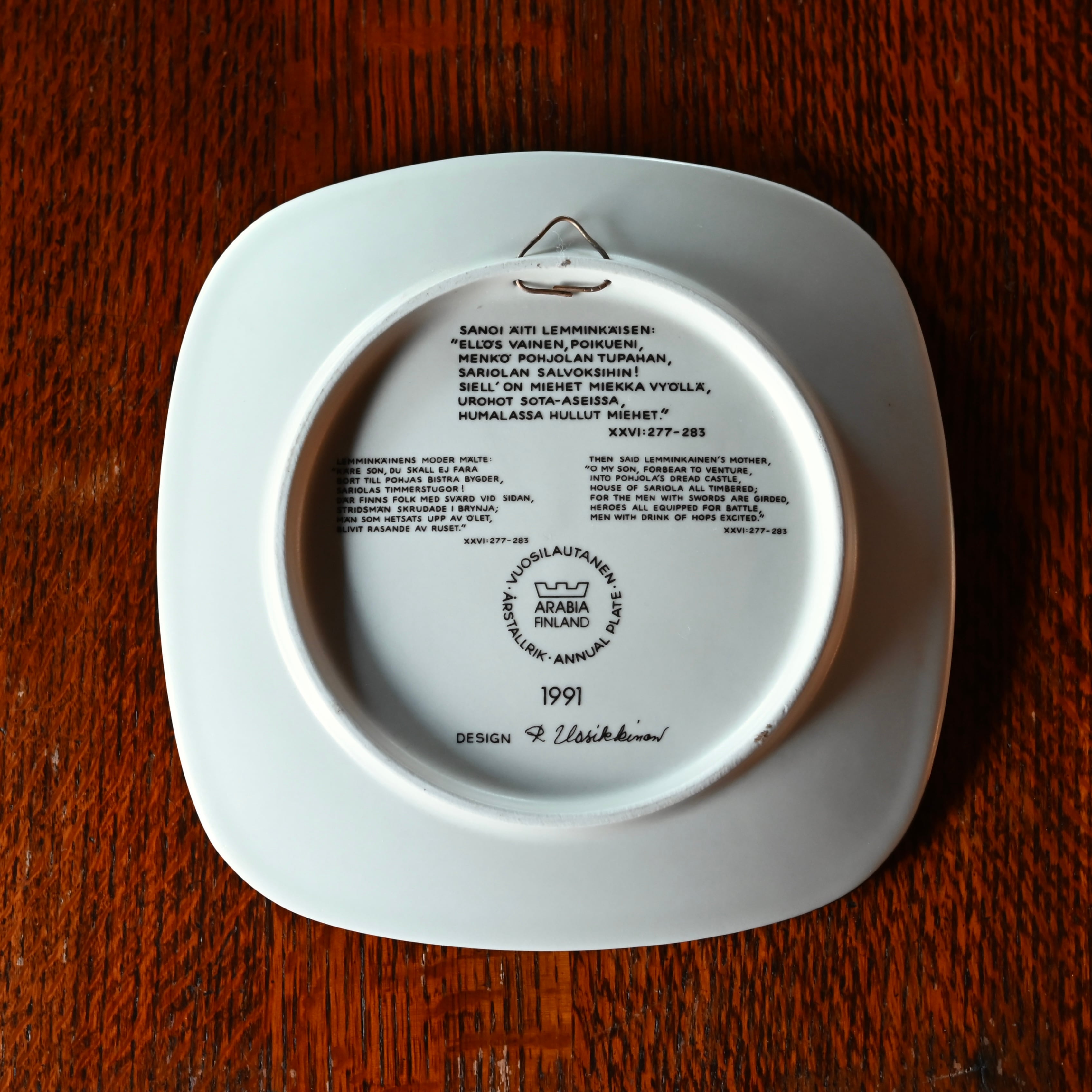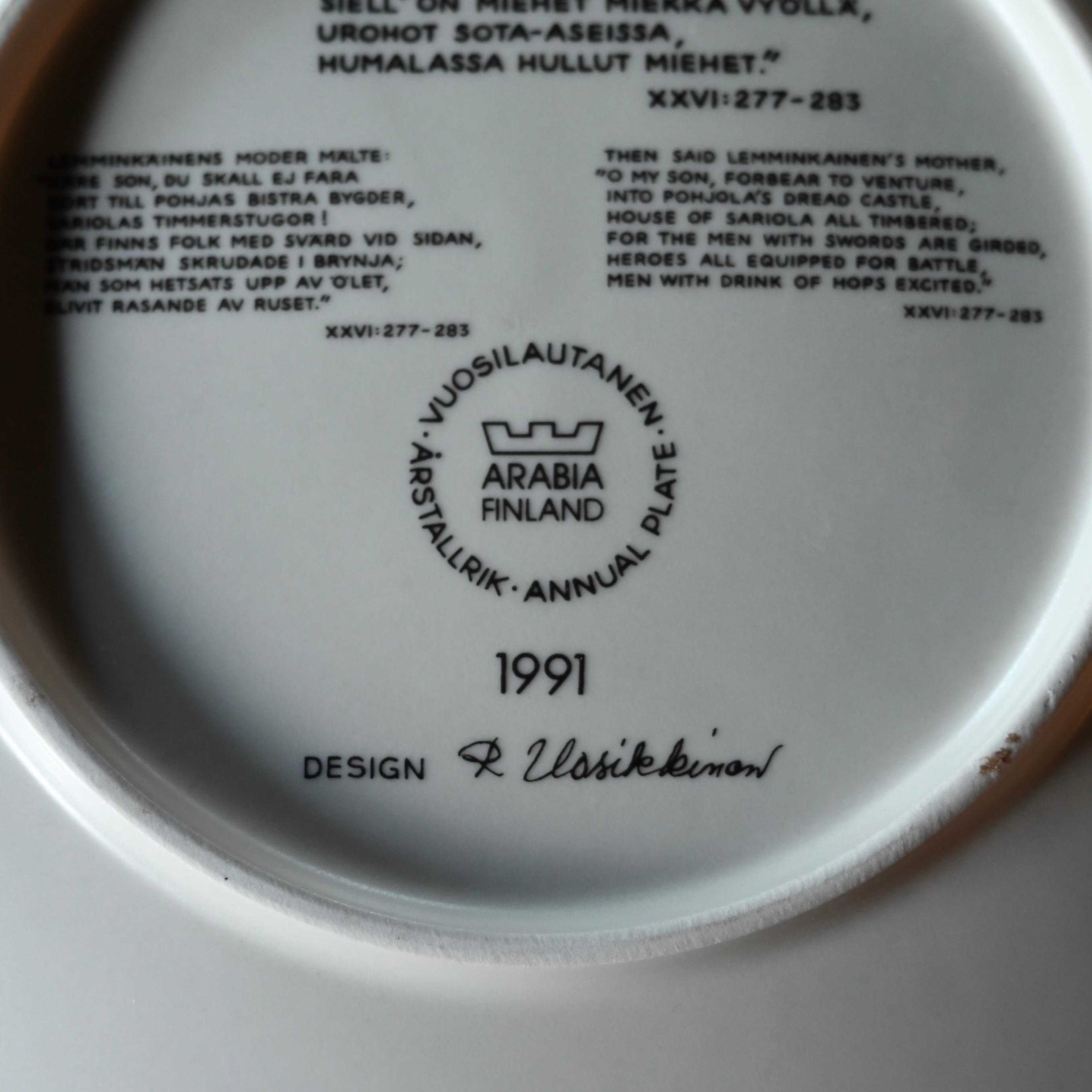 1976年〜1999年の間にデザイナーの"Raija Uosikkinen(ライヤ・ウオシッキネン)"がデザインし、24種類作られたプレートで、フィンランドの神話を描いた民謡叙事詩"Kalevala(カレワラ)"のアンシーンが描かれています。