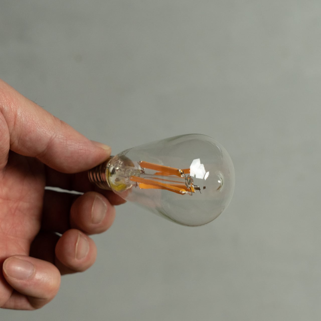 小ぶりなサイズで、エジソンランプのように内部のフィラメントが見えるので、どこか懐かしい雰囲気です。