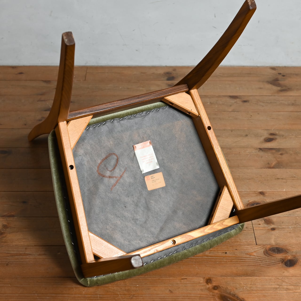座面を支えるフレームの裏側に1985年以降に製造された家具に使用されるラベルが貼られています。